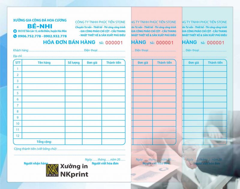Dịch vụ in hóa đơn bán lẻ Xưởng in rẻ NK Print bao gồm: